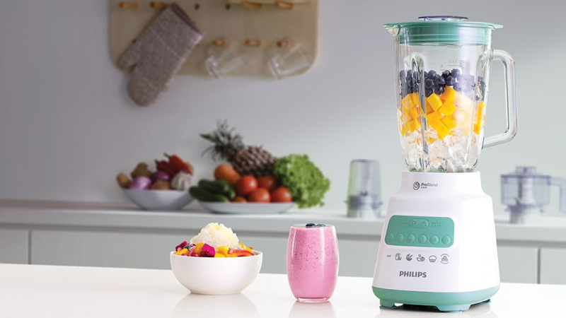 Produk blender Philips dirancang untuk mendukung aktivitas pengolahan bahan makanan dengan tingkat intensitas yang bervariasi. Blender ini menggunakan teknologi pisau ProBlend yang difungsikan untuk menghaluskan bahan lunak maupun keras, termasuk es dan bahan berserat. Motor berdaya tinggi yang digunakan dilengkapi sistem perlindungan panas untuk menjaga performa perangkat dalam penggunaan berulang.
